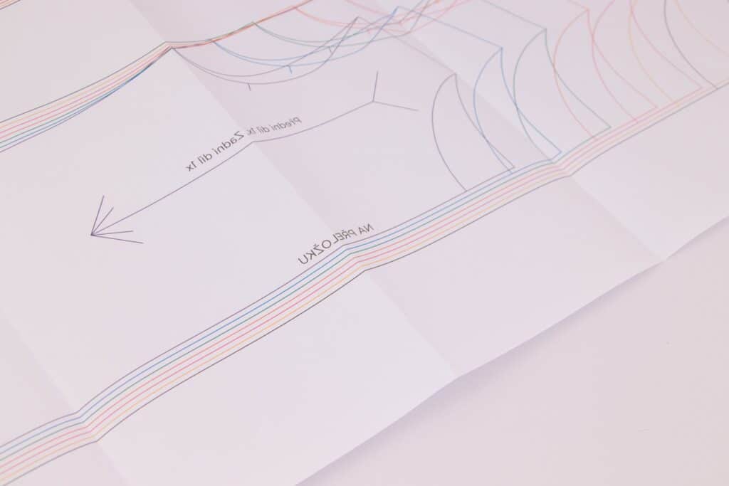 Přeložka označuje místo, kde je látka složená napůl a střih se pokládá čarou přesně na přehyb. Na střihu je označena slovem “přeložka”, “na přeložku” nebo “na přehyb”. Překreslí a stříhá se pouze polovina dílu – po rozložení získáte celý symetrický díl, například přední díl trička nebo sukně.