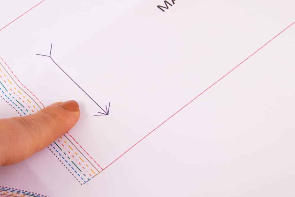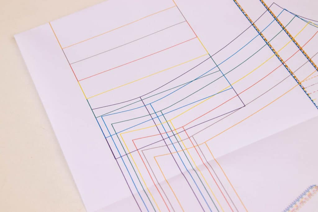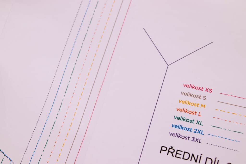 V obou případech najdete ve střihu i popisek s vysvětlením, která velikost má jakou barvu či druh čáry.