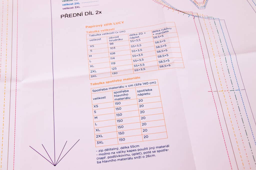 Každý krejčovský střih by měl obsahovat tabulku velikostí, kde najdeš rozměry ušitého oblečení v různých velikostech nebo rozměry jednotlivých dílů v různých velikostech.