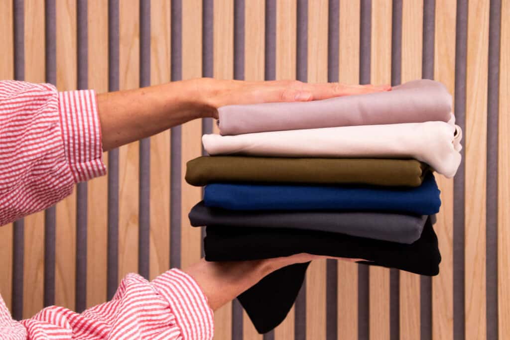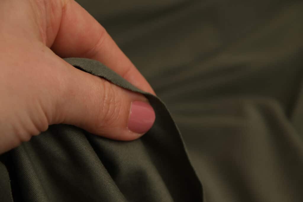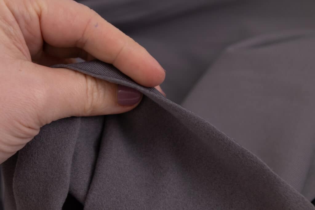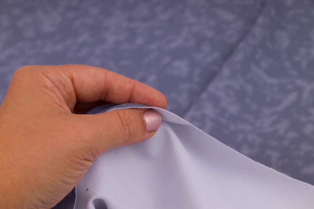 Při výběru dbáme na čtyřsměrnou elasticitu látky, což znamená, že materiál pruží do šířky i podélně. Pružnost pomáhá látce vrátit se do původního tvaru, dodává pohodlí a neomezuje v pohybu.